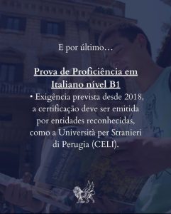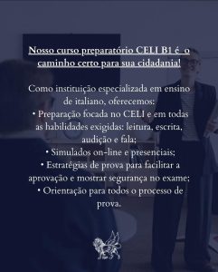 Eventos | Notícias Cidadania Italiana por Matrimônio setembro 18, 2025 by Avergs Se você é casado(a) com um cidadão italiano e deseja seguir esse caminho, não deixe o idioma ser um obstáculo! Entre em contato conosco hoje mesmo e comece a sua preparação para o CELI B1!