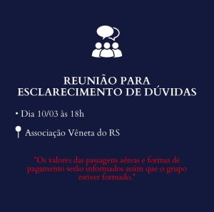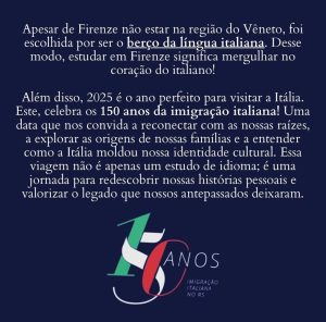 Quer ir estudar na Itália em 2025? É a sua chance de viajar conosco com esse preço imperdível! Caso esteja interessado ou já queira deixar seu nome como integrante do grupo, declare seu interesse no nosso WhatsApp, telefone (54) 98112-0937. Em caso de dúvidas, compareça à reunião em março! e Vai ser uma honra te ter junto à nós em Firenze!